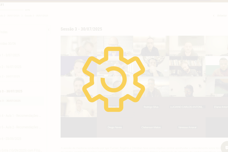 Esse encontro é usado para analisar decisões, destravar gargalos específicos, ajustar direcionamento e alinhar prioridades, garantindo que a implementação faça sentido para o seu momento e gere impacto real na operação.